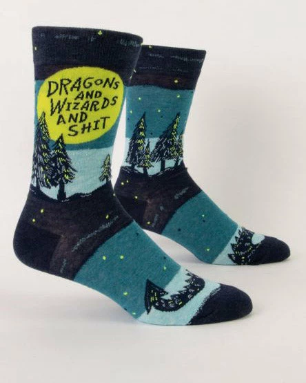 Best Sale ๐ Blue Q Dragons And Wizards And Shit Men’s Crew ๐งฆ Socks โจ