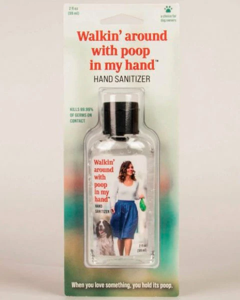 OurΒ Walkin’ Around With Poop in My Hand Hand Sanitizer is perfect for dog owners that pick up the poop and carry it around the neighborhood. Maybe they’ll stop and have a conversation with someone while they swing that bag around. Got yourself some poop there? Gross. Good thing there’s Poop In My Hand Hand Sanitizer! Right?