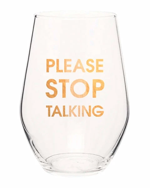 Crush your wineΒ in style with our “Please Stop Talking” gold foil stemless wine glass. Wine glasses are printed in Los Angeles.Β ο»Ώ