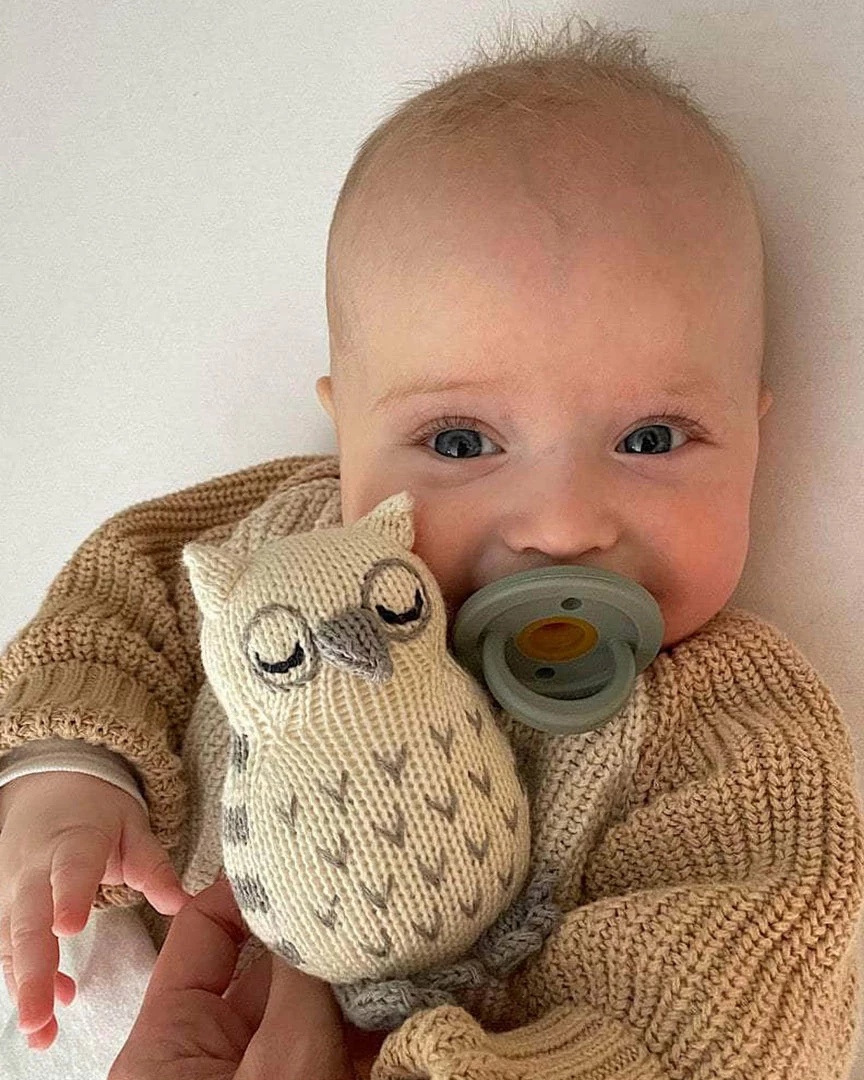 Handmade in Peru by local artisans, this organic cotton owl baby rattle toy is a classic yet darling addition to Estella’s award winning collection of toys for babies. Elegant stripes, gender-neutral colors, and a soothing sound make this owl a wonderful first toy or baby gift that will be cherished for a lifetime.