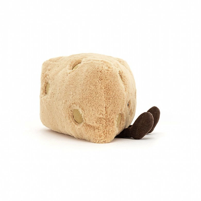 Holey smokes, it’s Amuseable Swiss Cheese! Beautifully beigey with suedey patches, this funny fromage is scrumptious to snuggle. Our cheeky cheese loves trotting and toddling over the Alps on those cute cordy feet!
