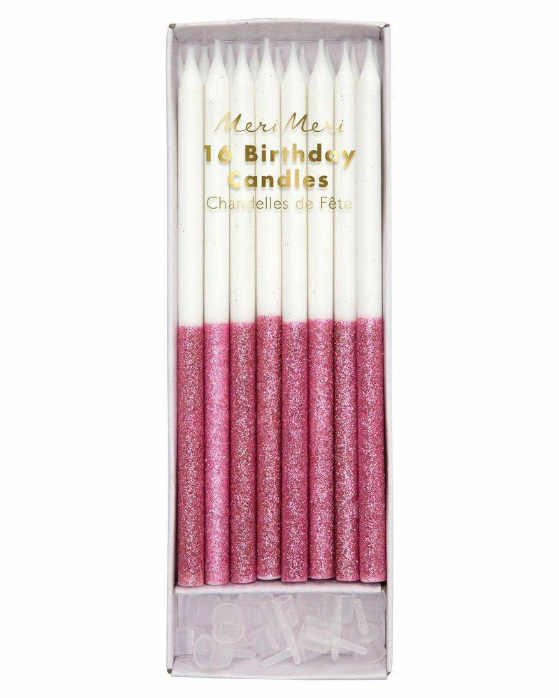 These gorgeous two-tone glittery candles will look really impressive on a special celebration cake.