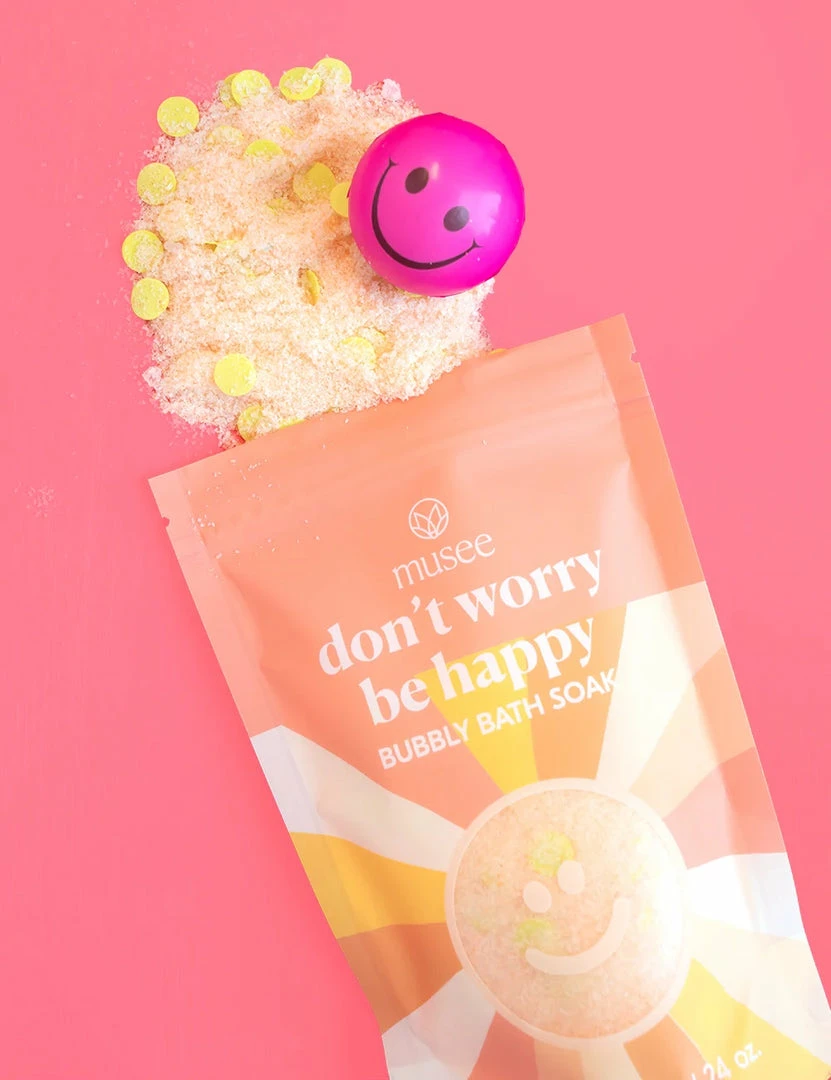 Don’t worry and be happy with this confetti-filled, mango-scented bubbly bath soak! This soak makes a colorful bubble bath!