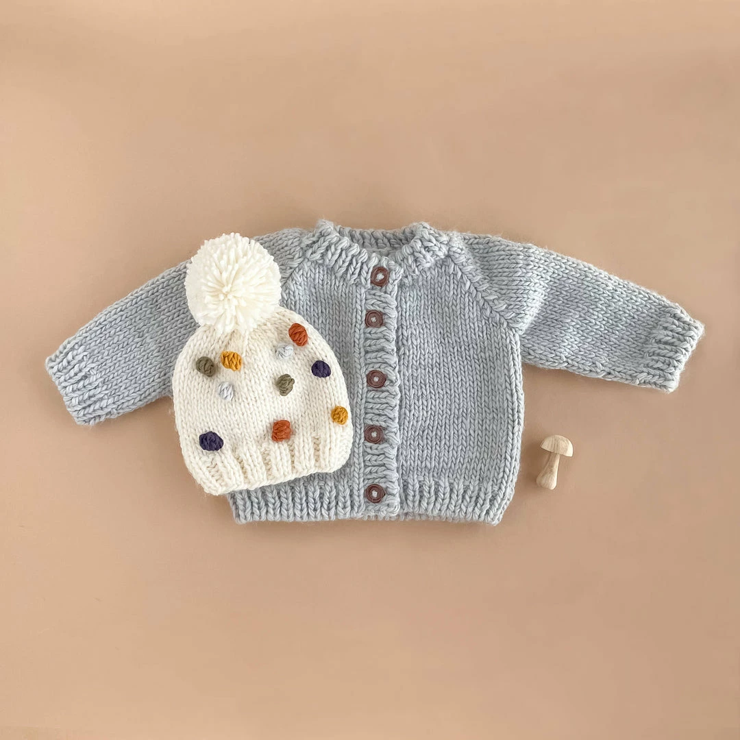 Keep your little one warm while they begin to explore the world. Made of 100% soft hand-knit acrylic, this cardigan is sure to be a favorite part of their wardrobe with its touching pastel color.