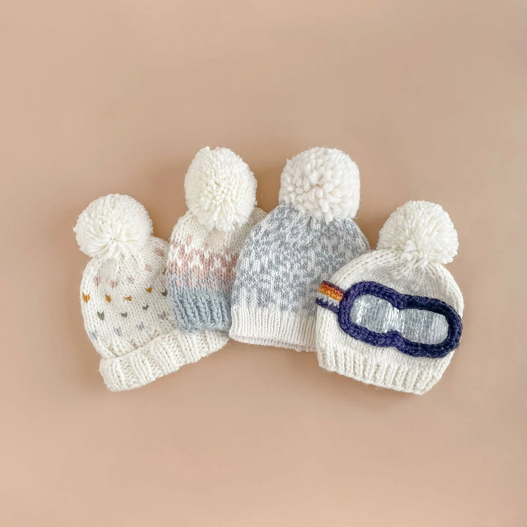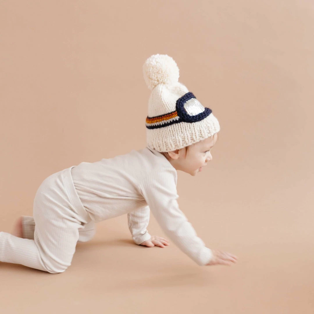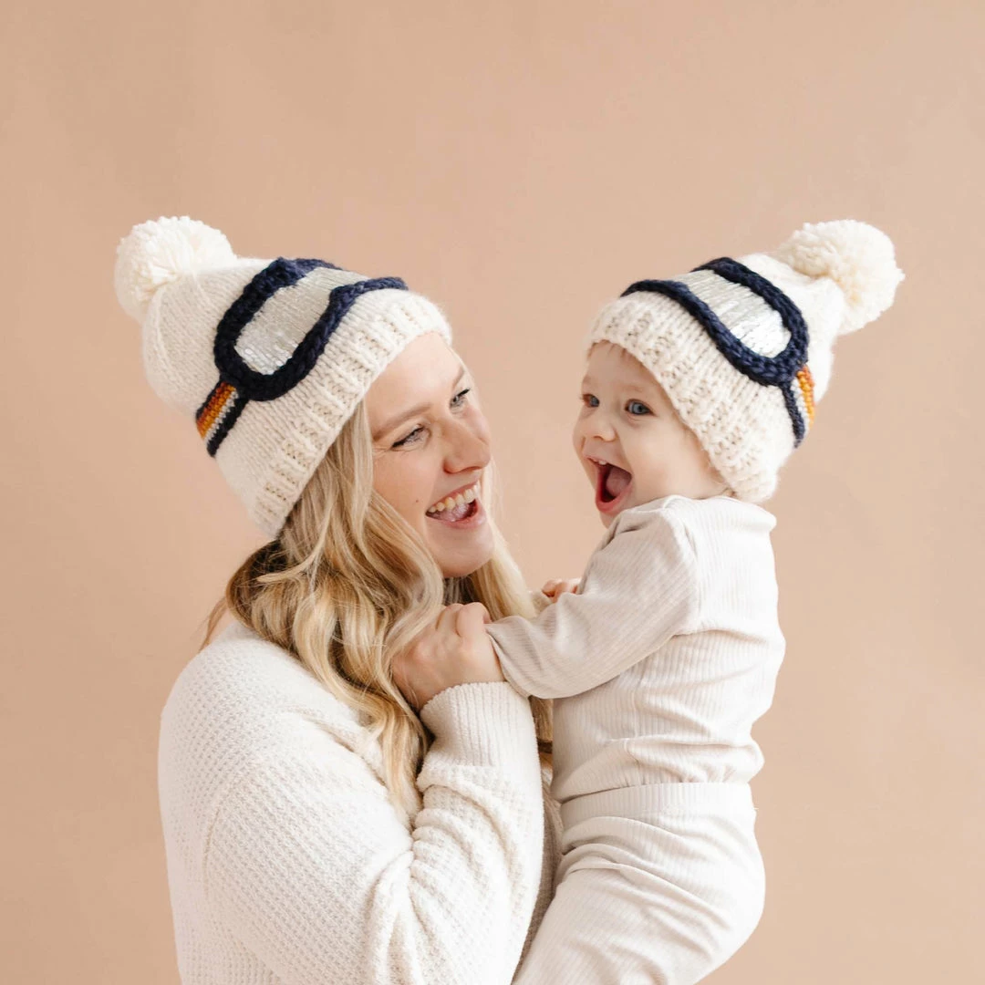 This soft Ski Goggle hat is essential for your little aspiring skier. With a colorful striped band and metallic faux glasses, it’s the perfect accessory for winter. Goggle Band includes Navy, Cinnamon, Mustard, and Bowie Grey colors. Pair with a Classic Cardigan or Mittens to complete the look.