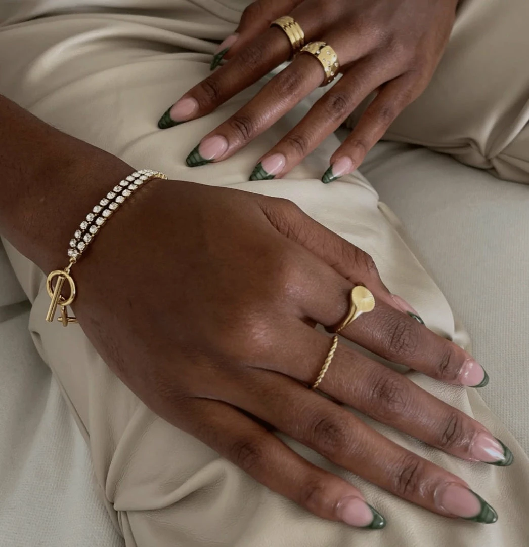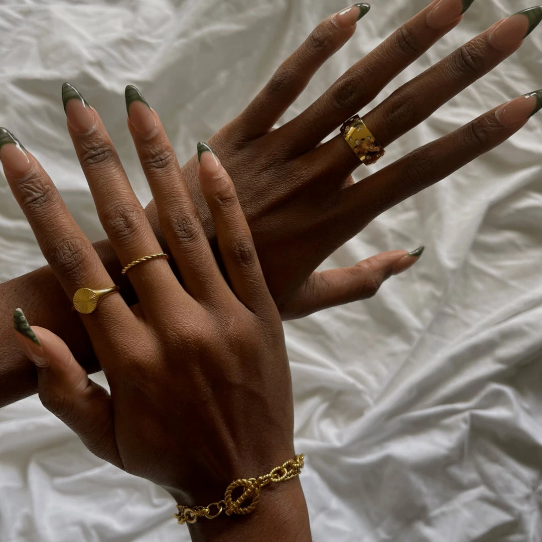 It is made from hypoallergenic metalsΒ such asΒ stainless steel and copper, which are then plated in 18k gold. We set out to create fashion jewelry that actually lasts.Β