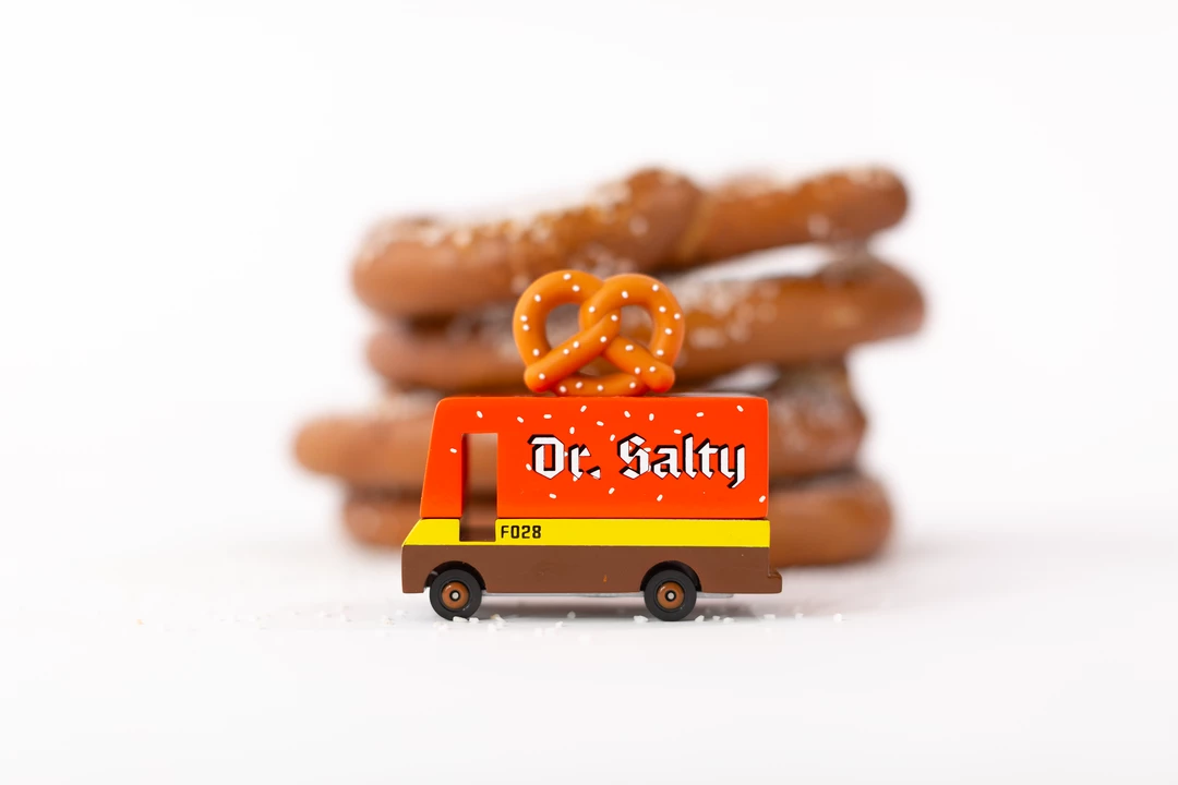 Youβre knot going to be able to resist our new Dr. Salty Van. Trust us, weβre all twisted up over this one. Our Dr. Salty Van wouldnβt be right without a golden brown, salted pretzel topper. Mustard/Cheese not included.