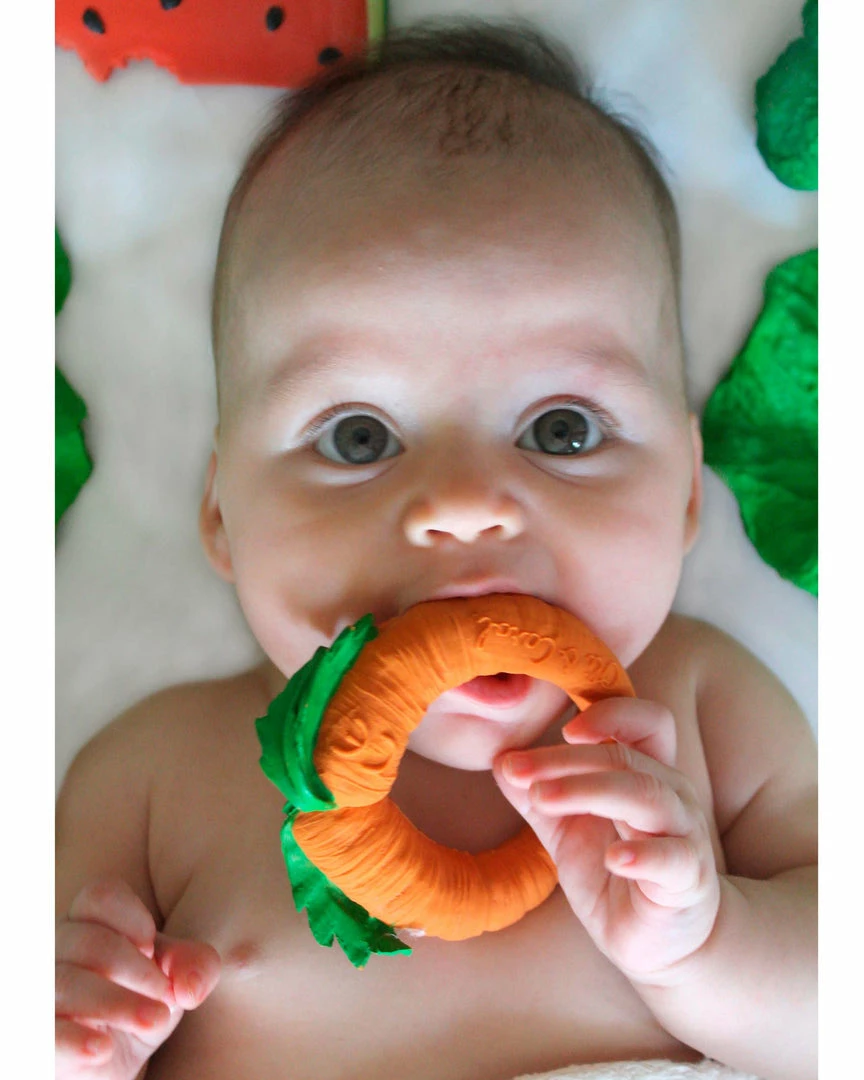 CATHY THE CARROT is a vegetable-shaped baby toy perfect for teething, sensory play, and bath time – all the while introducing them to a healthy lifestyle at an early age! Safe for kids, worry-free play!