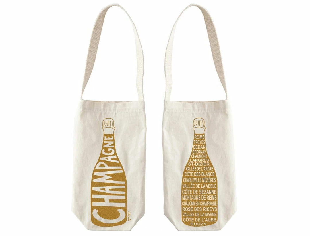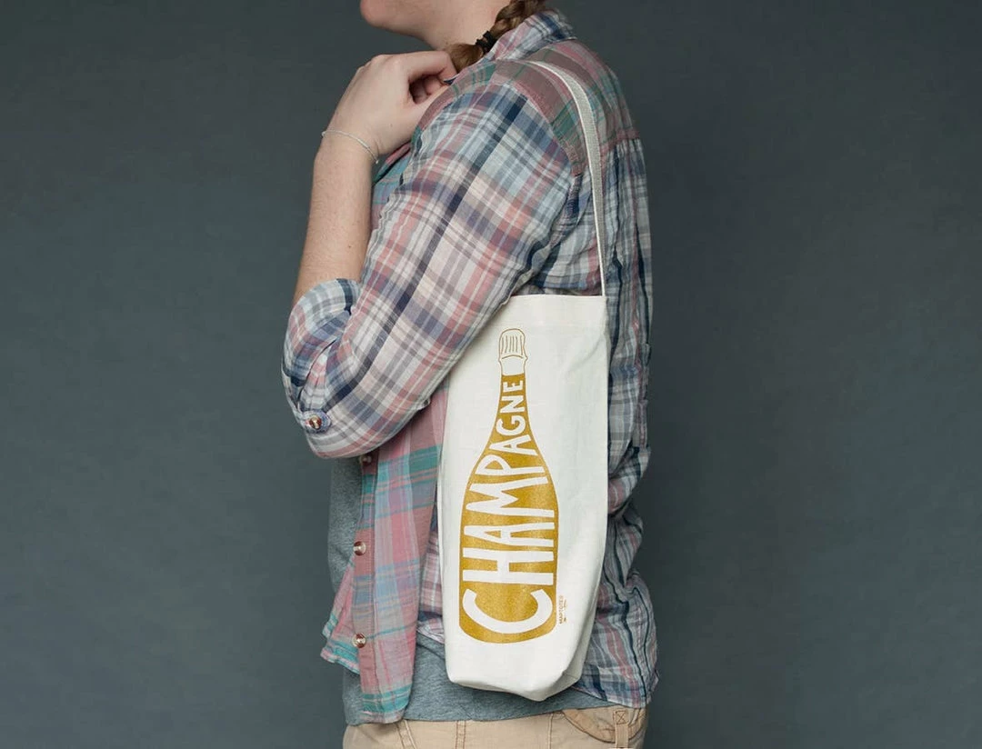 Perfectly fits a bottle of champagne to create a unique gift. Arrive at your next dinner or housewarming party in style and ready to sip some champage with our single wine tote.