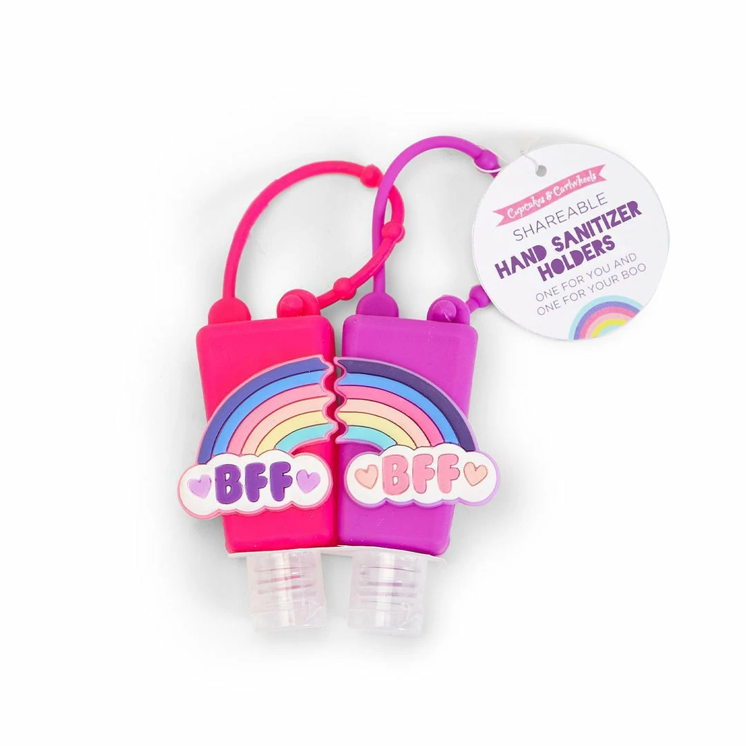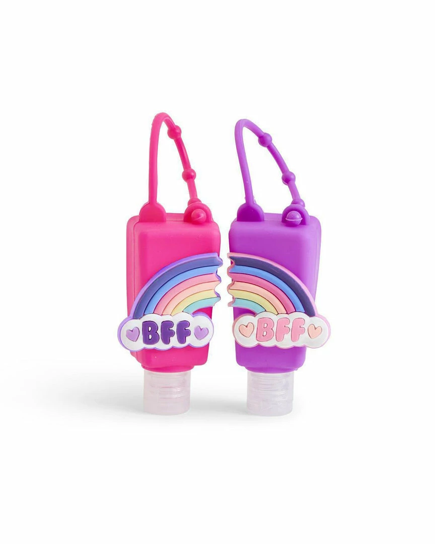 Share the rainbow with your BFF with this pink and purple hand sanitizer bottle holder set. Always connect the Rainbow when you and your bestfriend reunite. Perfect size and adjustable strap to take with you on the go.