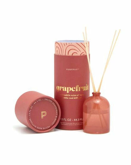 1.5 oz milky glass bottles with four wooden reeds. Each diffuser is packaged in a giftable tube with gold foil.Β Flip the reeds for a fragrance refresh!