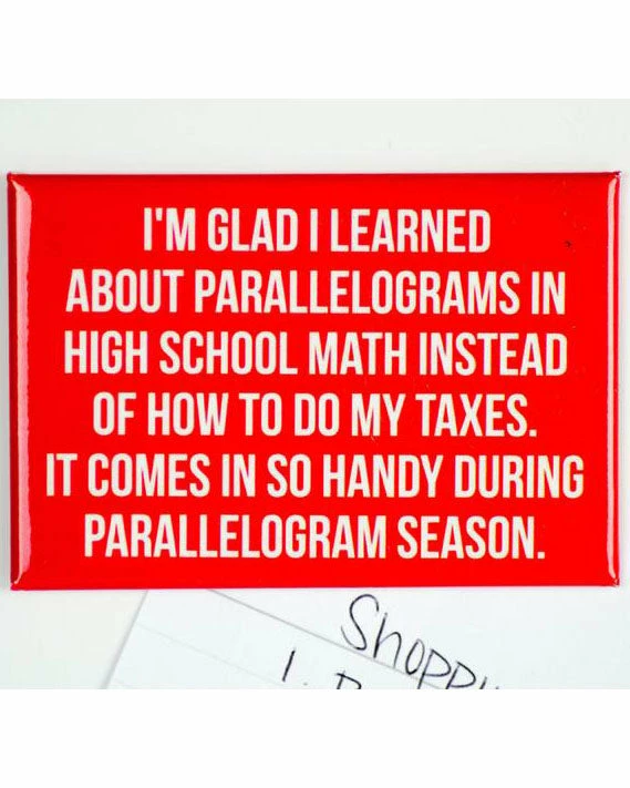 I’m so glad I learned all about parallelograms in high school math instead of how to do my taxes. It comes in so handy during parallelogram season.Β