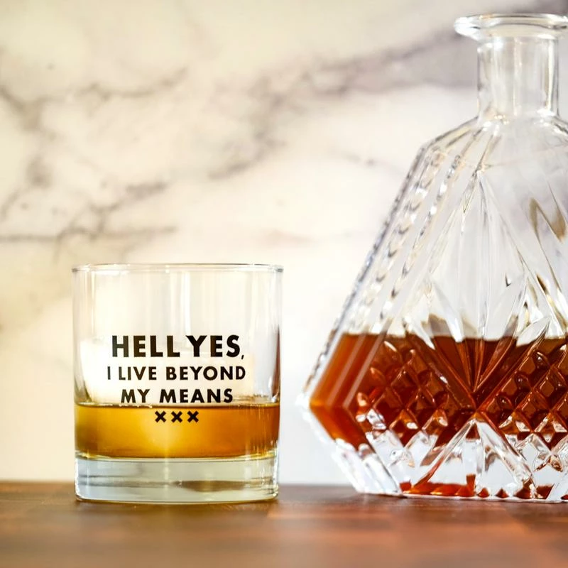 Hell yes, I live beyond my means… Gentleman’s Whiskey Glass.
