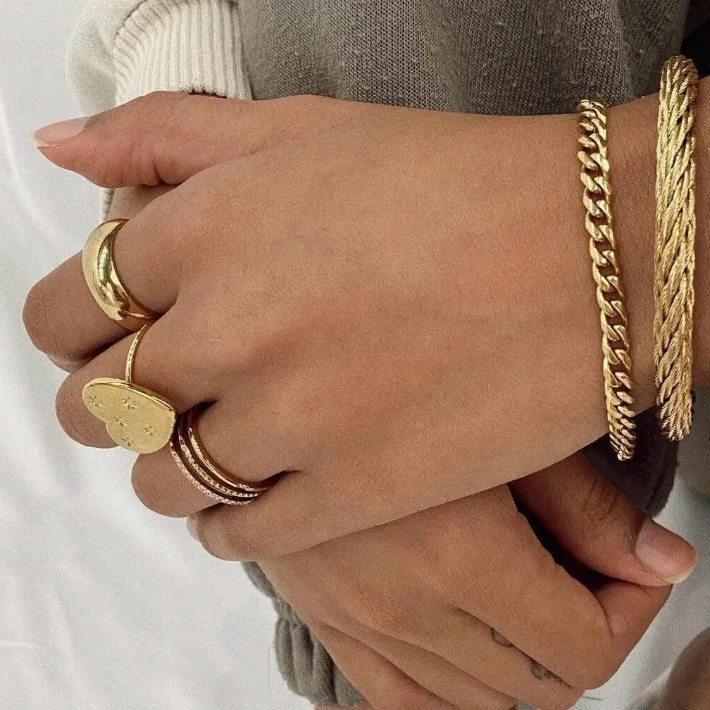 Chunky Cuban chain links connect to make the perfect bracelet with a bit of edge.Β