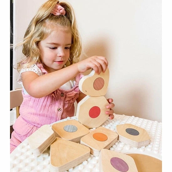 Little Stackables Includes: 9 Stackable Blocks with Unique Shapes and Colors