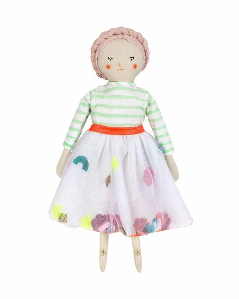 From an imaginary friend to a traveling companion, every doll occupies a special place in the heart of her owner. The Meri Meri Matilda Doll is crafted from pale calico with plaited pink wool hair, and sweet embroidered features.