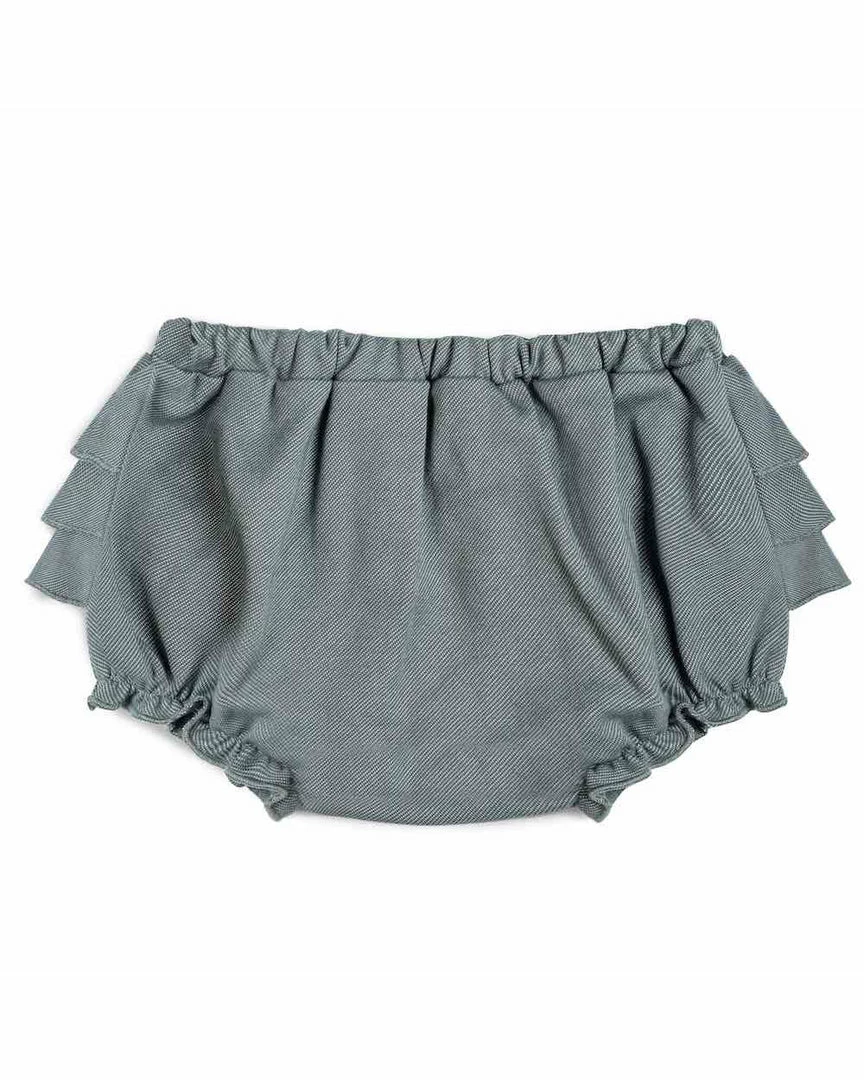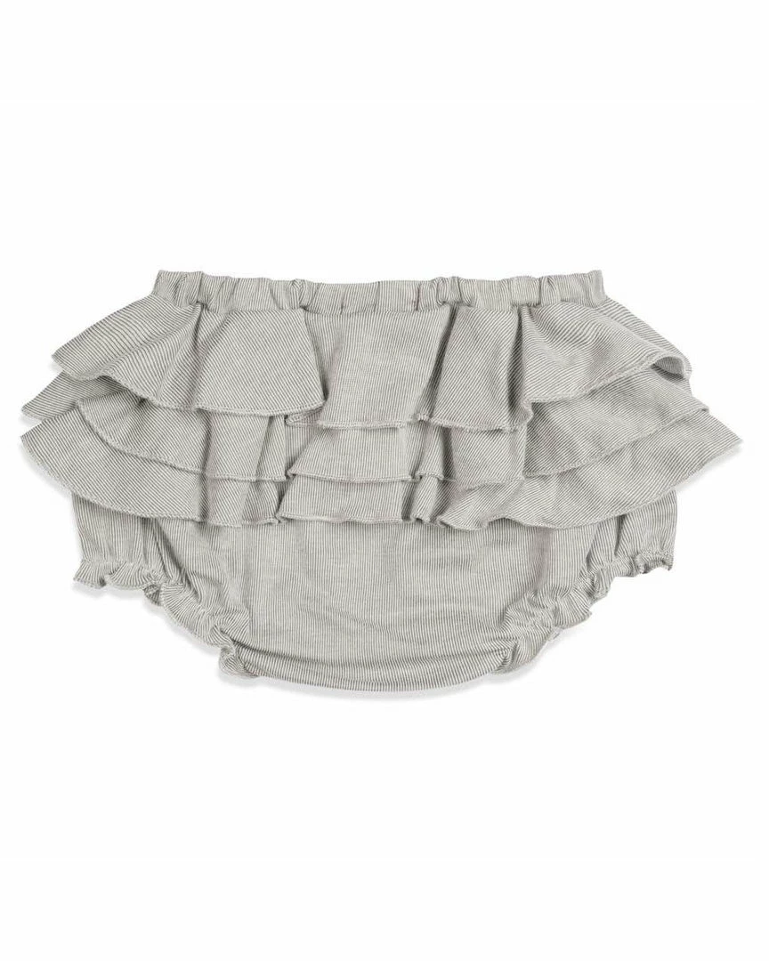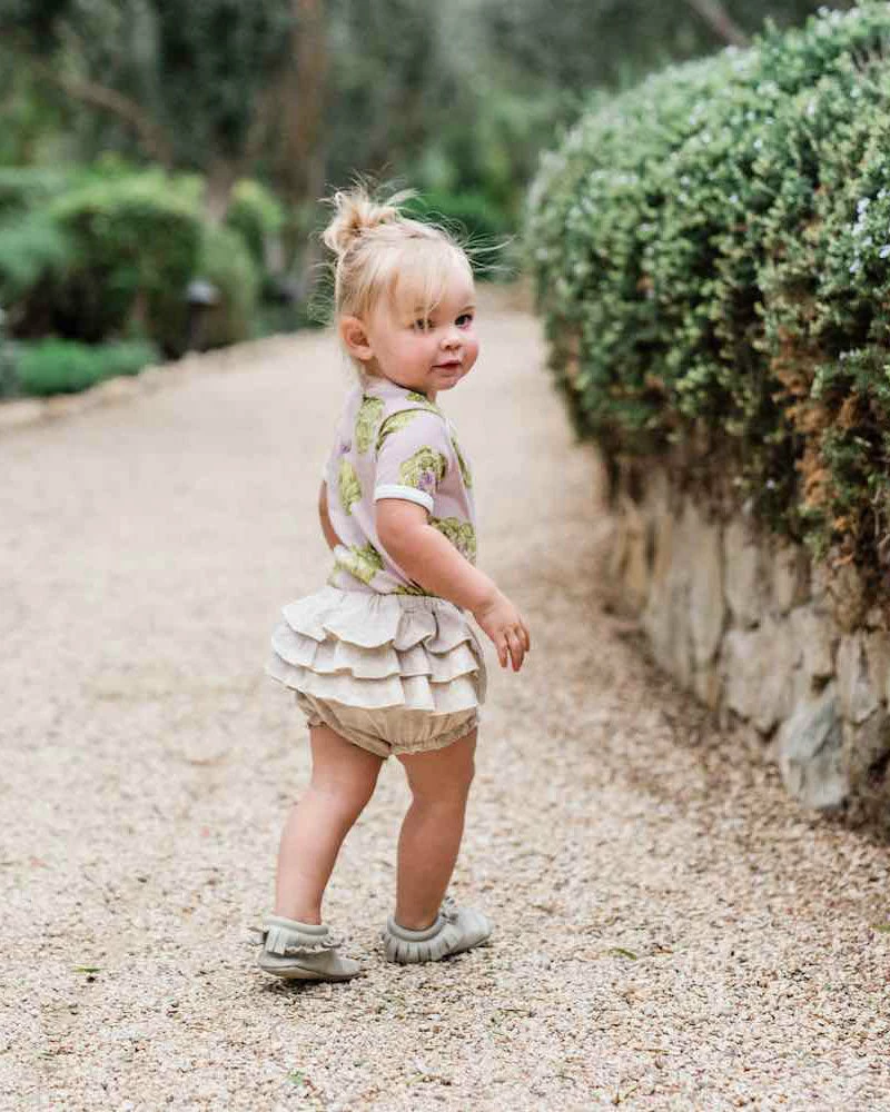 Like riding a hand-carved horse on a carousel or skipping on a beach boardwalk, our little girls give a nod to a bygone era when wearing our comfy Ruffle Bloomer. Our structured design incorporates 3 cascading, full-width rear ruffles, a gathered elastic waistline, and ruffled legs. Create a unique and versatile ensemble when paired with our One Piece, Applique One Piece or Long Sleeve One Piece.