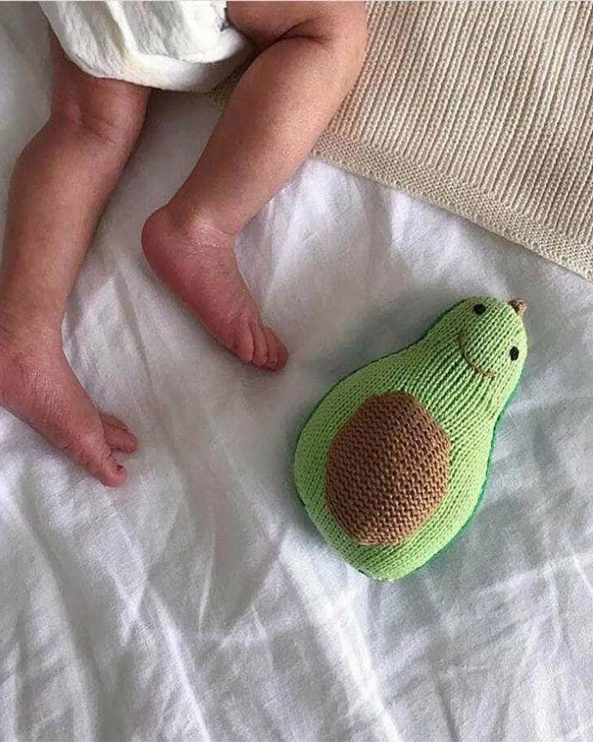 Estella’s avocado rattle is a fun way to introduce baby to this delicious nutrition packed fruit. Part of Estella’s award winning line of organic baby toys, these new rattles are also handmade with 100% organic cotton. Combine with other infant toys from Estella for an outstanding baby shower gift.