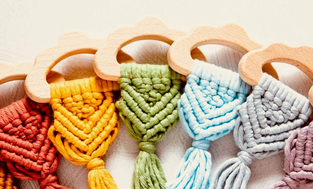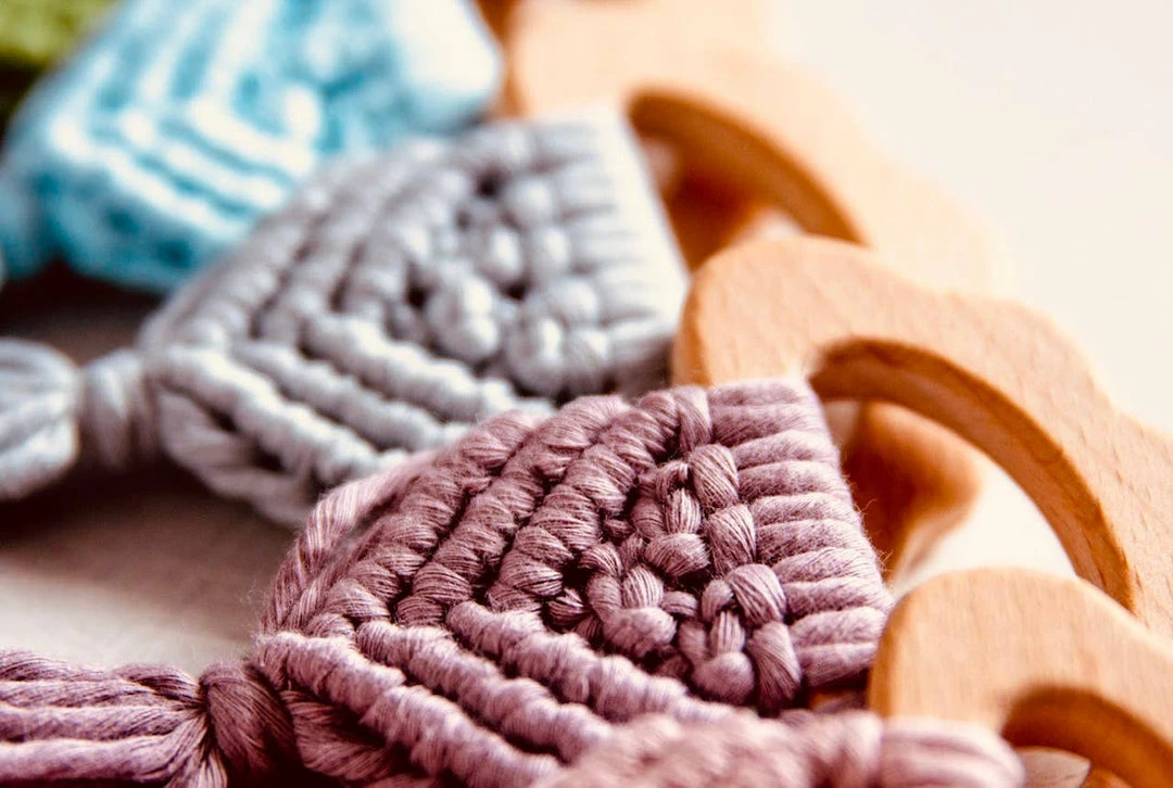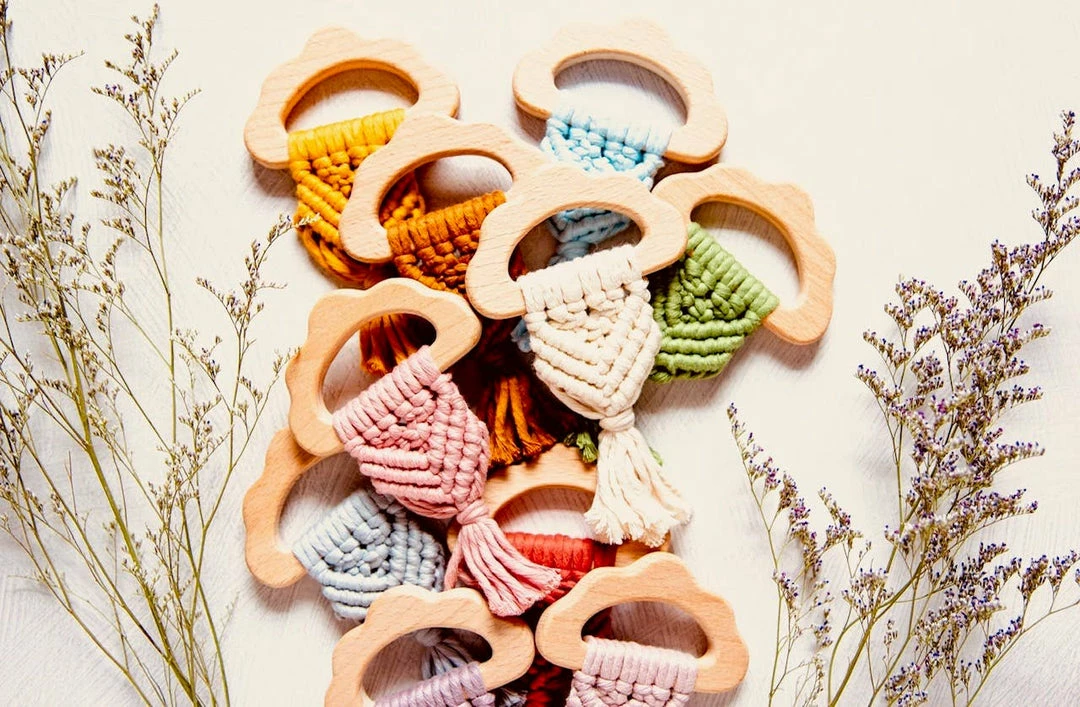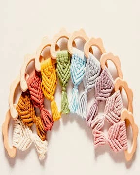 Top quality organic cotton Macrame cord combined with Organic Maple wood cloud teether. So much better and preferred than plastic toys containing chemicals and toxins! It is: ** Beautiful! ** Easy to use ** Easy to clean ** Versatile ** Durable NO toxins: * FDA Approved. * BPA FREE * Lead FREE * 100% NON-TOXIC * Mercury FREE *** Clean with soapy water and air dry ***
