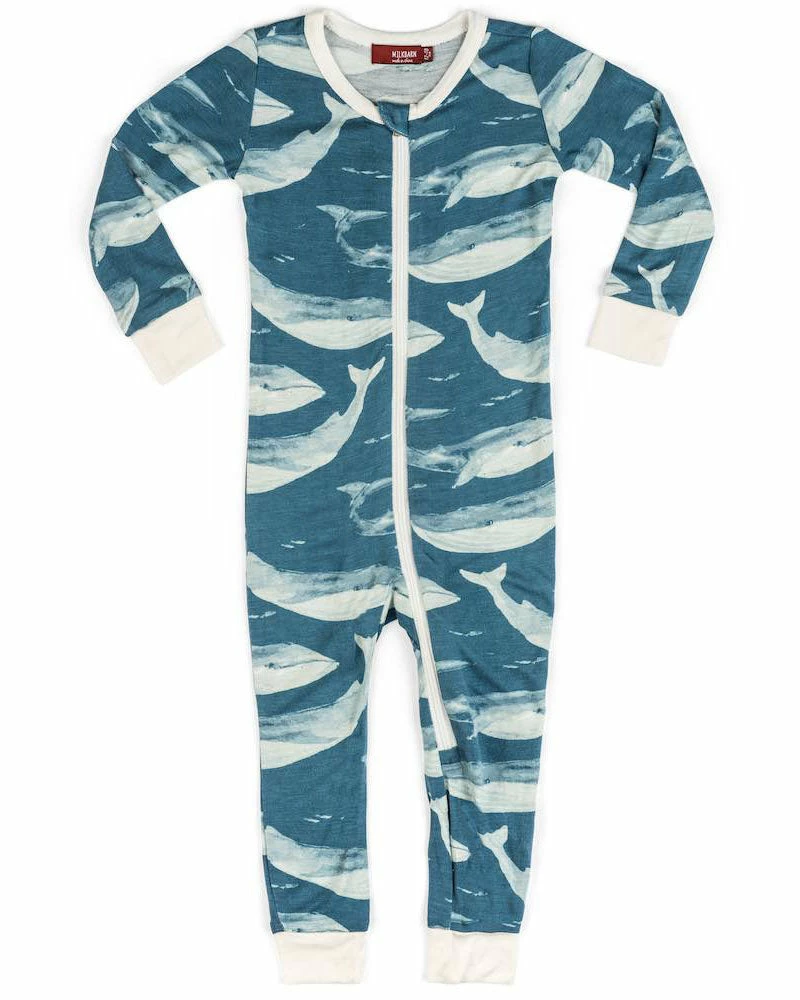 Wholesale 💯 The Little Apple Milkbarn Blue Whale Bamboo Zipper Pajamas LITTLE APPLES 🥰