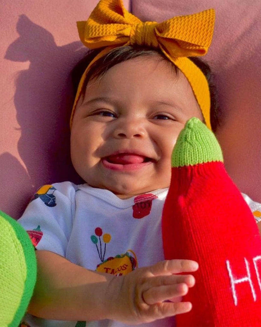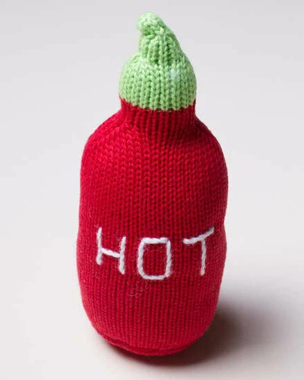 A must-have newborn toy for any baby with foodie parents, the Estella hot sauce organic rattle is a clever and quirky option for baby. With its hot red color, silky cotton feel, and engaging sound, this soft toy makes a cheeky yet memorable baby gift.