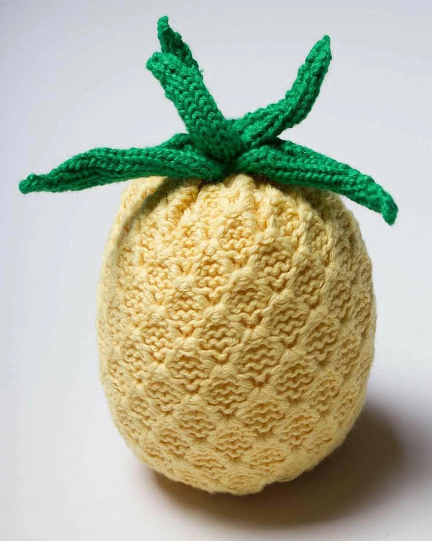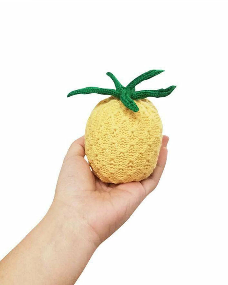 Introduce newborn to the pineapple with this baby toy rattle. This rendition of the delicious tropical fruit is fun for interactive play and to distract baby when they’re unhappy. The soft rattle sound will intrigue them, as will the texture of these knit infant toys.
