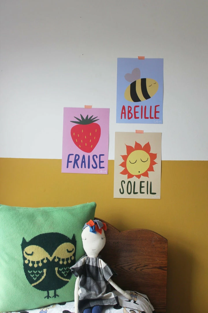 Add a splash of fun to your space with this playful ‘FRAISE’ print or create a mix and match display with ‘ABEILLE’ and ‘SOLEIL’ for the perfect contrast of colours.